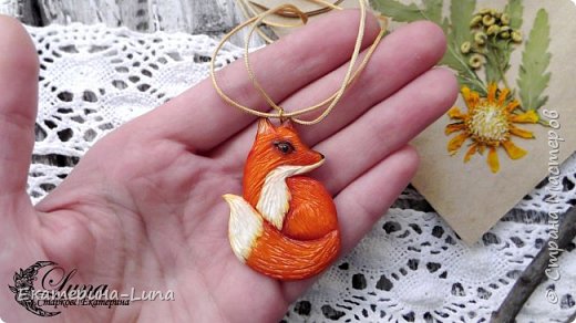 В этом мастер-классе я покажу, как сделать кулон из полимерной глины в виде лисички. Вы увидите, как сформировать лису и как выполнить ее тонировку. Также я покажу способ крепления петелечки для шнурочка и вариант обработки тыльной стороны кулона. Такое украшение из полимерной глины должно понравиться тем, кто любит этих интересных животных. Материалы и инструменты: - запекаемая полимерная глина оранжевого, белого и полупрозрачного янтарного цвета; - жидкая полимерная глина; - секундный клей; - сухая художественная пастель оранжевого, красно-коричневого и темно-коричневого цвета; - акриловая краска черного и темно-коричневого цвета; - глянцевый лак для полимерной глины; - бижутерная булавка золотого цвета; - шнурочек с застежкой; - макетный нож; - скалка для полимерной глины; - игла; - толстая игла или шило; - стек с петелькой; - силиконовый стек (не обязательно); - тонкая кисточка; - кусачки; - круглогубцы.